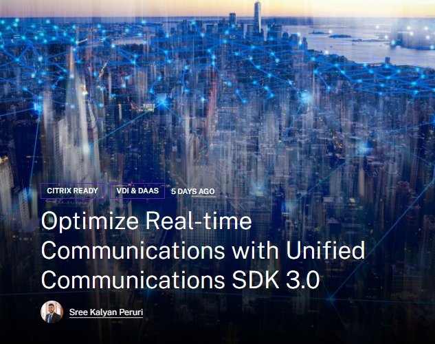 在過去的一年中,Citrix HDX 團隊專注於優化即時通訊。為了履行我們提供匹配或超越本地效能的用戶體驗的承諾,我們很高興地宣布推出統一通訊 (UC) SDK(也稱為 WebRTC SDK)3.0 版。 關於統一通訊 SDK 統一通訊 SDK 專為在即時通...