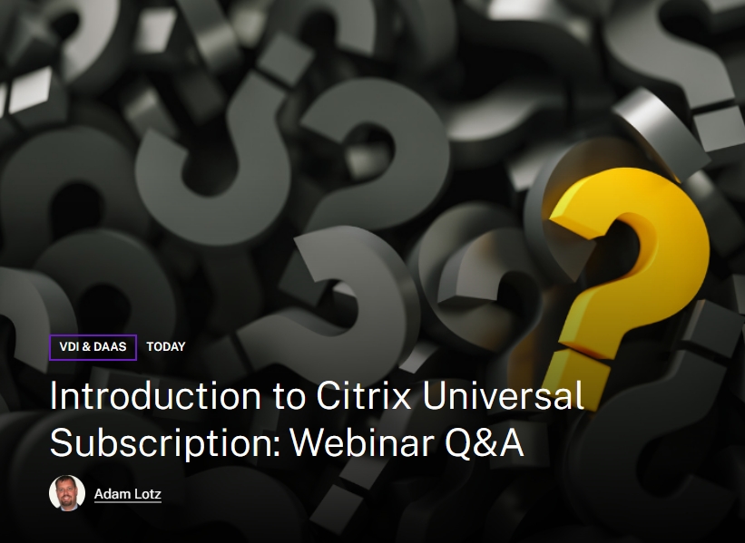 眾所周知,Citrix 不斷創新並提供新功能以使您的環境更加靈活、提高部署速度並改善最終用戶體驗。Citrix 還完全致力於滿足處於部署過程中的組織,而Citrix Universal 訂閱只是我們在這一過程中邁出的第一步。 隨著轉向 Citrix U...