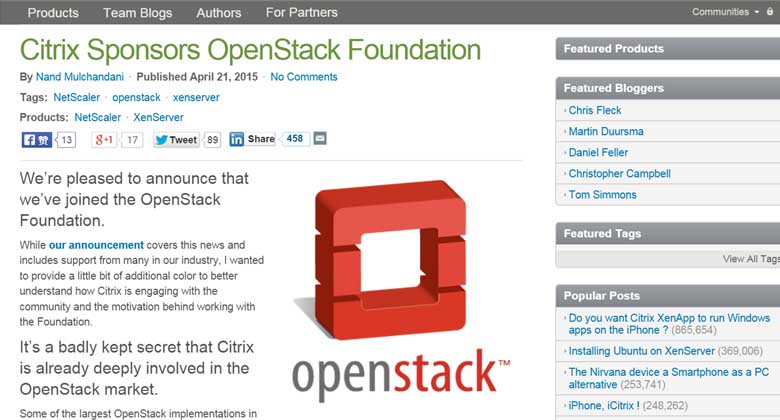 今年4月,Citrix終於宣布正式加入OpenStack基金會,外界也在觀察他們對於OpenStack的支援動作,是否變得更積極。 以Citrix旗下的NetScaler這套應用程式發布控制器(Application Delivery Controller)的產品...