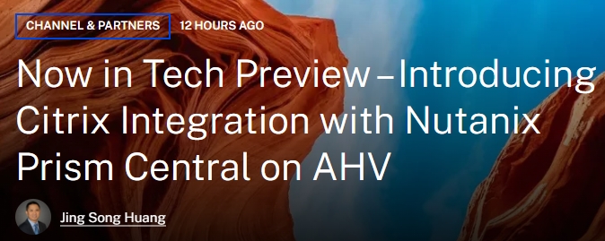 今年早些時候,在Nutanix .NEXT 2024 活動上,我們宣布與 Nutanix 的合作邁出重要一步,以支持混合多雲環境。今天,我很高興與大家分享,Citrix 與 AHV 上的 Nutanix Prism Central (PC) 整合的公共技術預覽版現已推出...